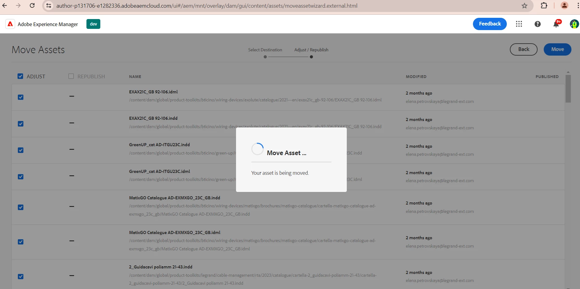 | Improved/Expected Behavior: | Moving of 100+ assets with references is fast and there are no any errors and there is no never-ending spinner. |