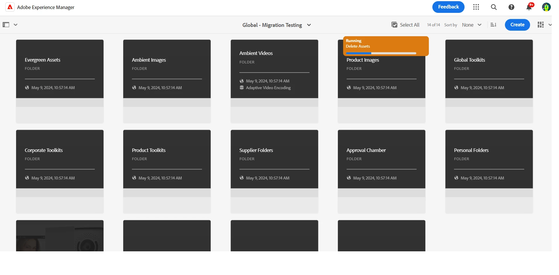 | Current/Experienced Behavior: | Moving of 100+ assets with references is too slow and finally fails. From time to time there is never-ending spinner. (Screenshot Attached) Its hard to understand if move operation is completed. So it confuses. Also we have new remove feature. So we can remove now folders with big numbers of assets. It works as expected now. Also there is progress bar which helps to monitor progress of removing. (Screenshot Attached) |