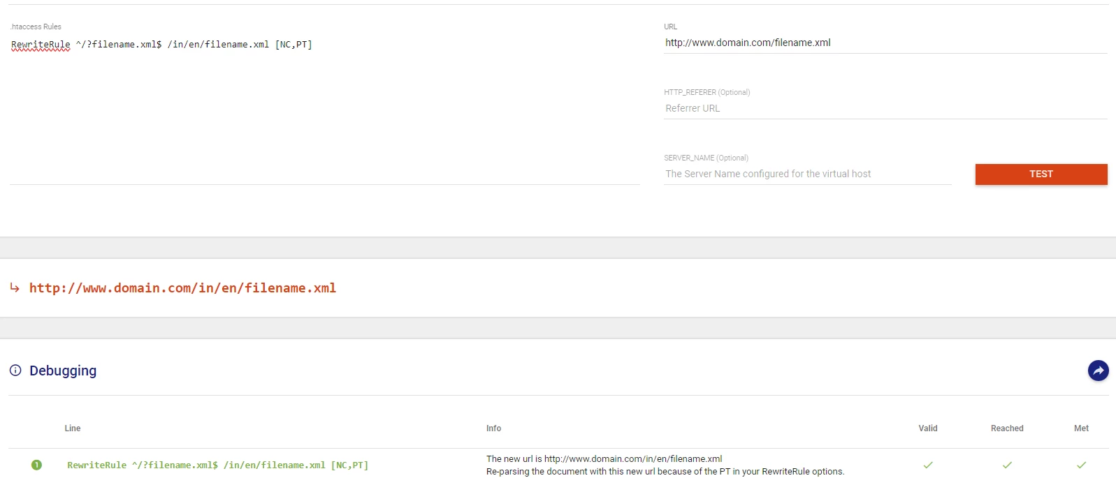 RewriteRule ^/in/en/filename.xml /filename_in.xml [PT,L]