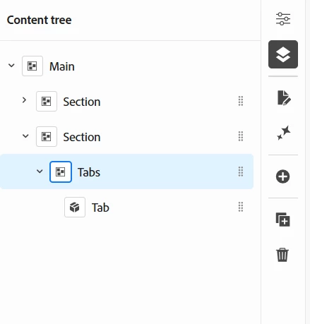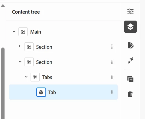 Nesting blocks in Universal Editor – Section > Tabs > Tab > Carousel not working