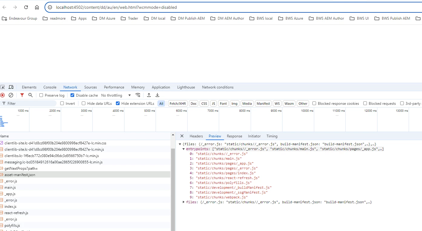 I have been exploring the template on https://github.com/adobe/aem-headless-app-templates for Next.js integration with AEM. This only seems to work with Next.JS 12 and not the latest Next.js. AEM remotepagenext resource type seems to hit two endpoints in Next.js. One to get the next data props and the other to get the asset manifiest.