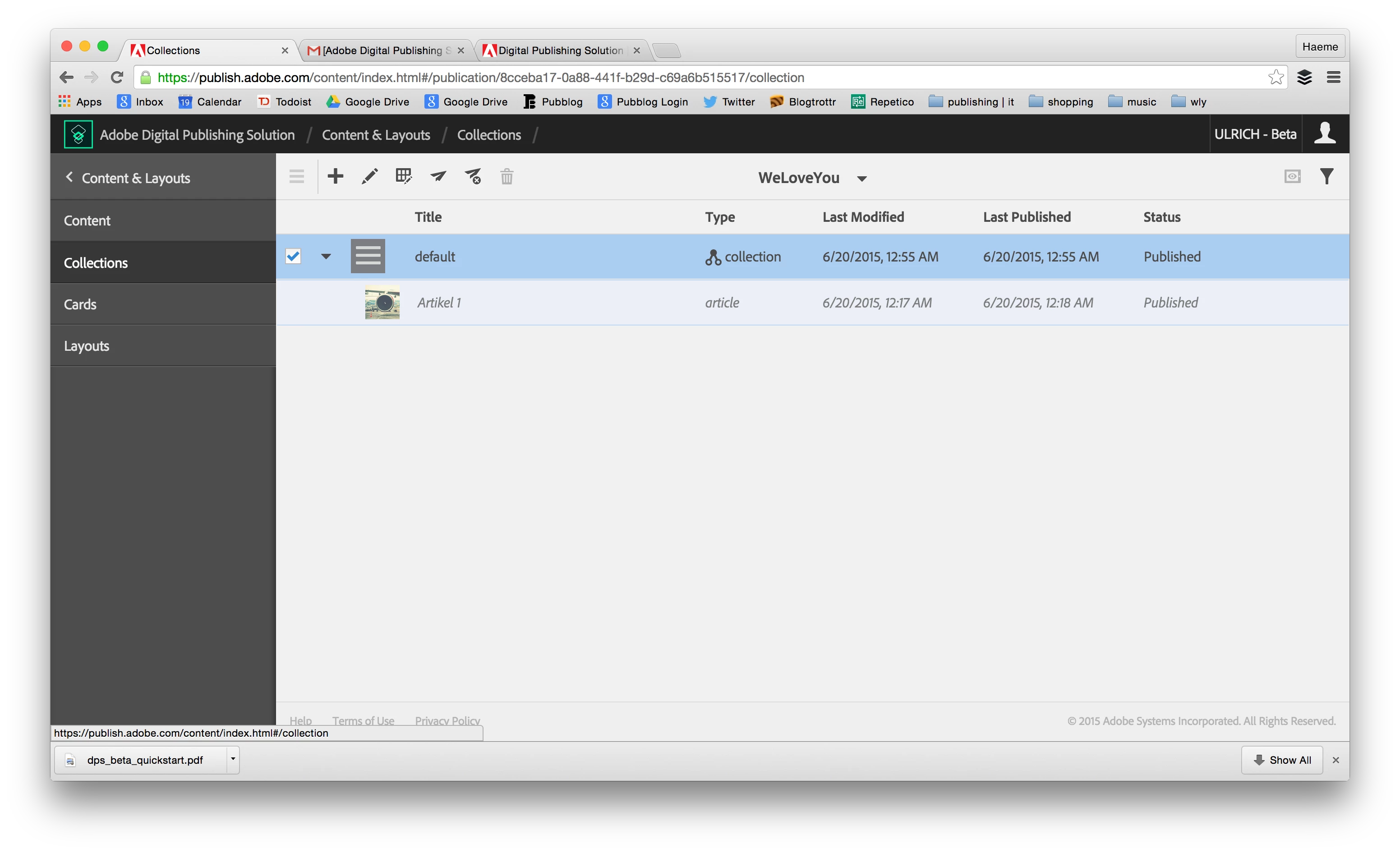 I made an Android App and installed it on a HTC phone. Unfortunately I don't get any content even though I published a collection with added articles.