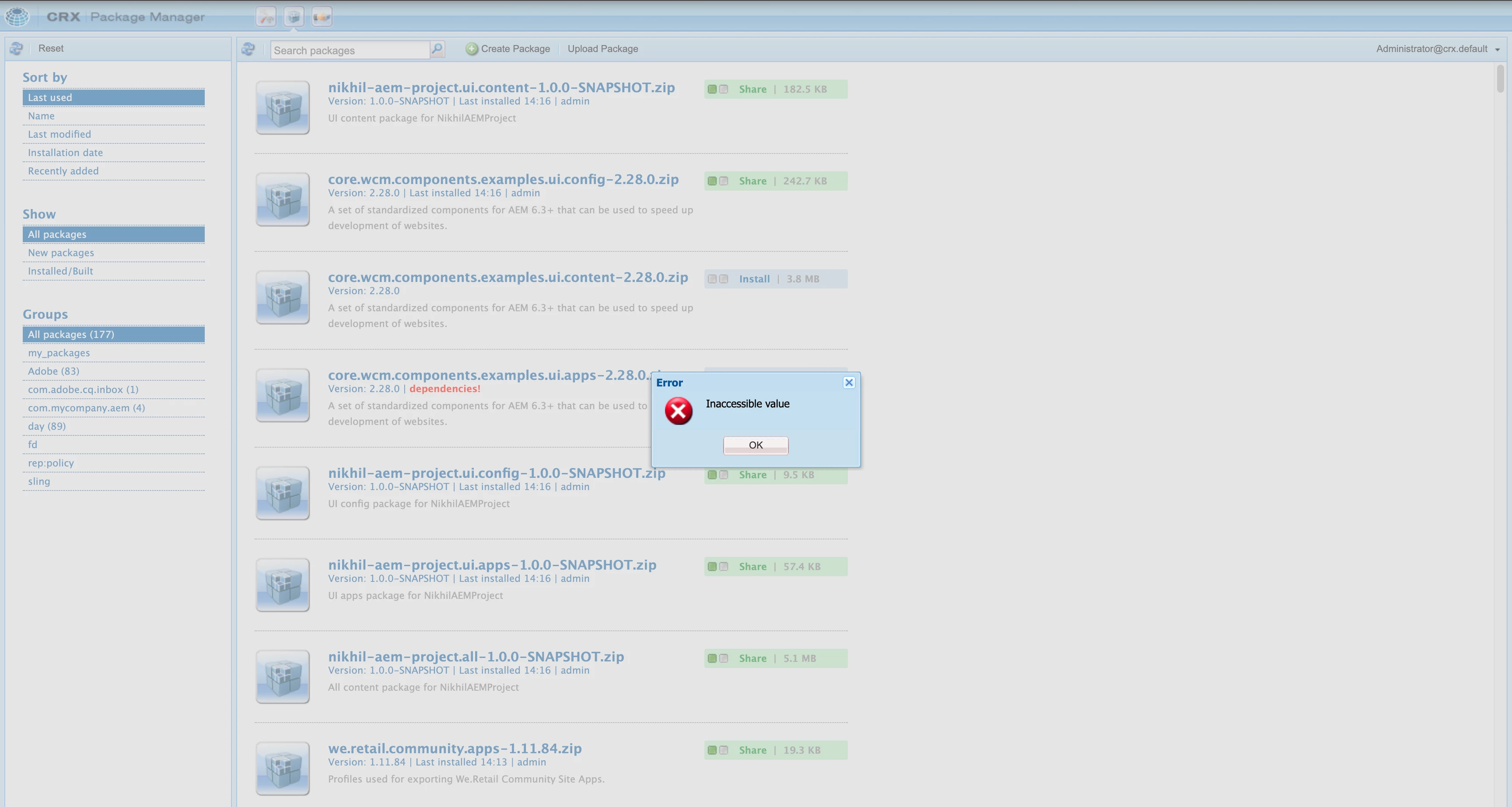 i have recently installed new project arch in my laptop but while i was creating a new page i am unable to see default templates and core components in AEM