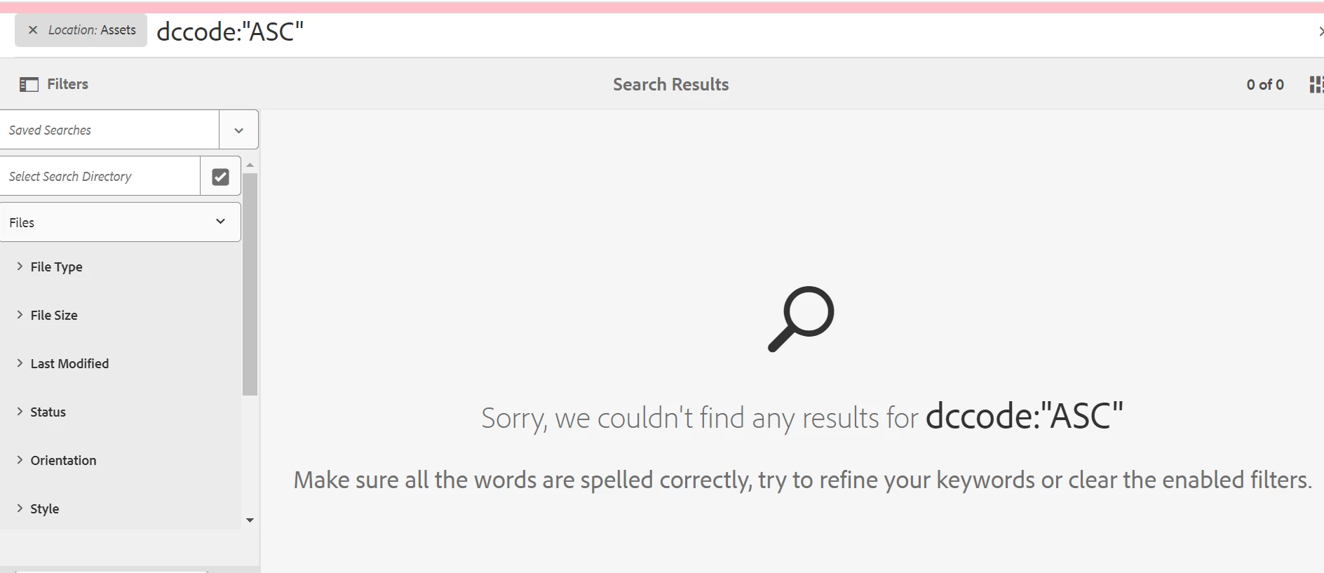 Not able to search assets based on custom metadata property.