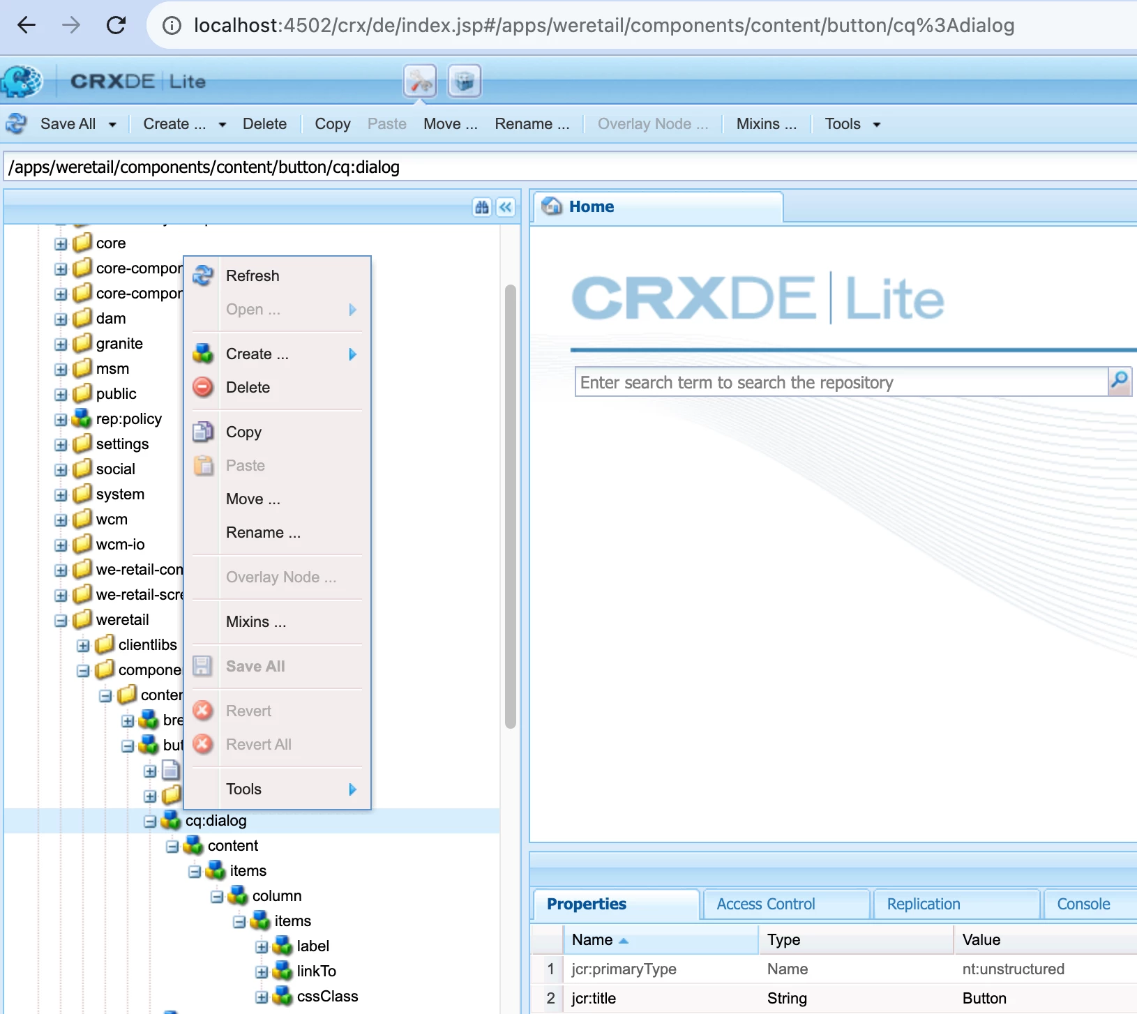 One click to expand the entire parent node in crxde