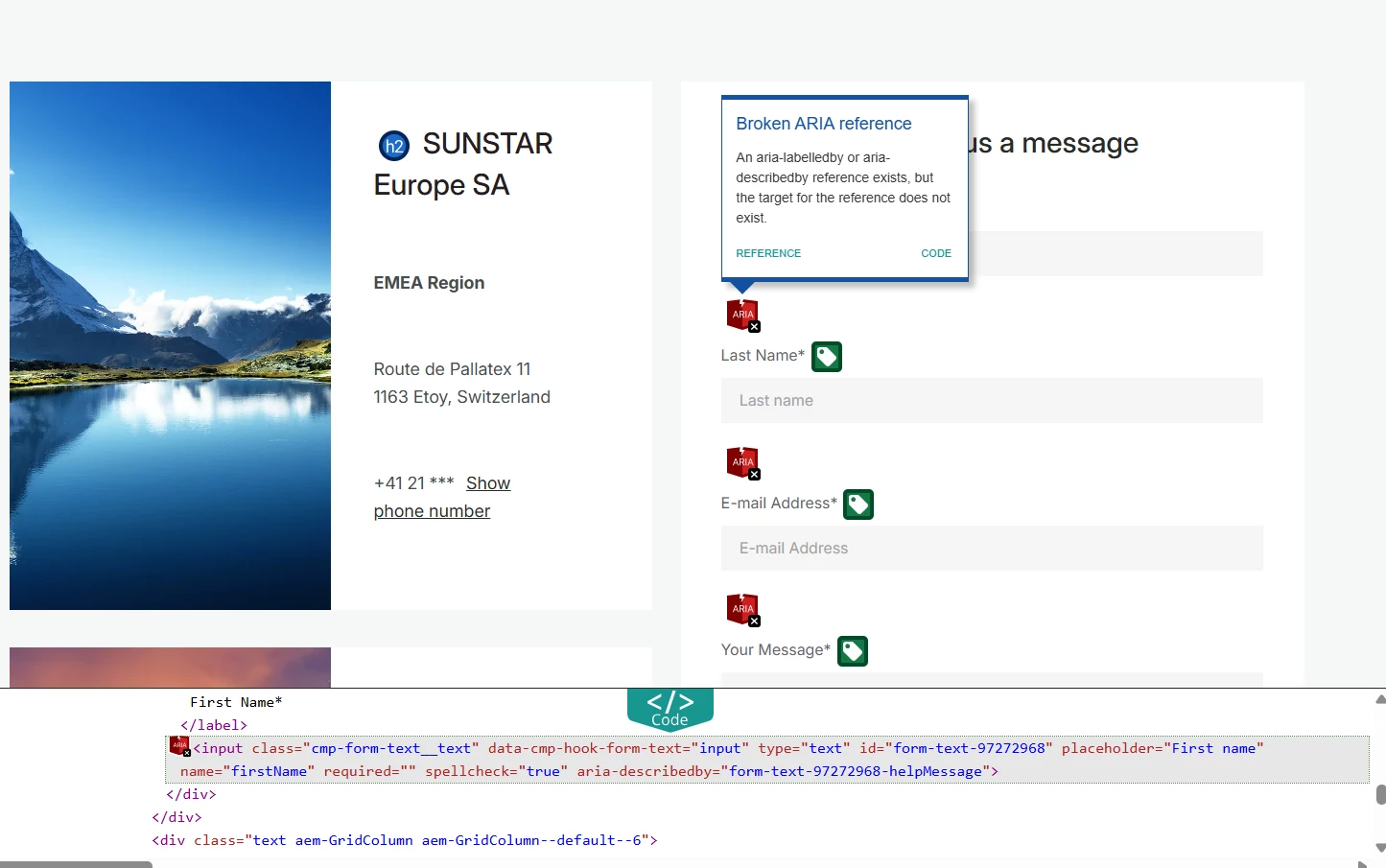 | Use-case: | Using Adobe Core Form Fields, with ootb configuration "Display help message as placeholder” Example: on page https://www.sunstargum.com/gb-en/about-us/contact-us.html |