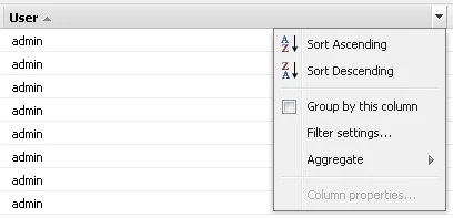 On top of "page", "Type", "User" and "time" go and click on it, there you will get sorting and filtering options.