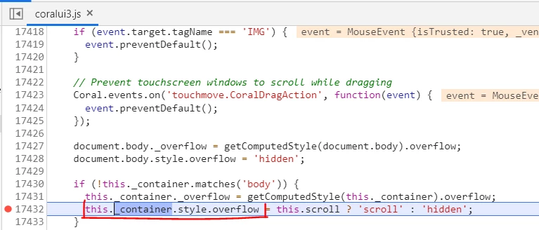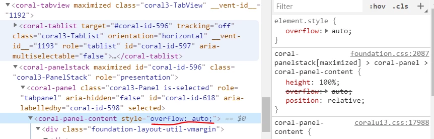 Which sets the overflow property of the coral-panel-content (basically the container of the entire tab, that starts right under the Main title) to hidden (default is auto) :