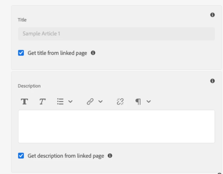 Page description & component description field to share the authored content