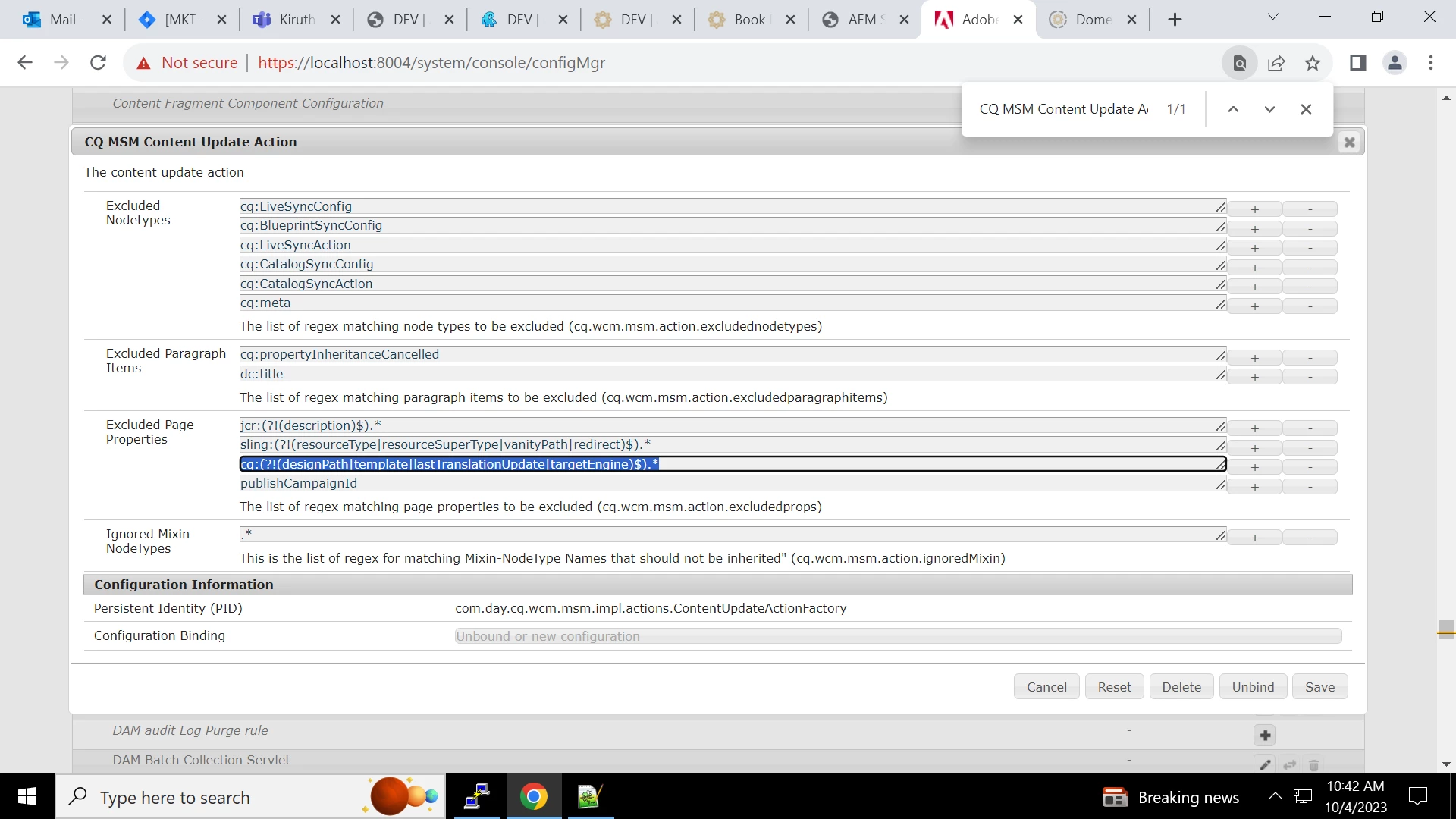 we want to change this below Regular expression, so that it should allow only cq:tags properties to live copies after rollout.