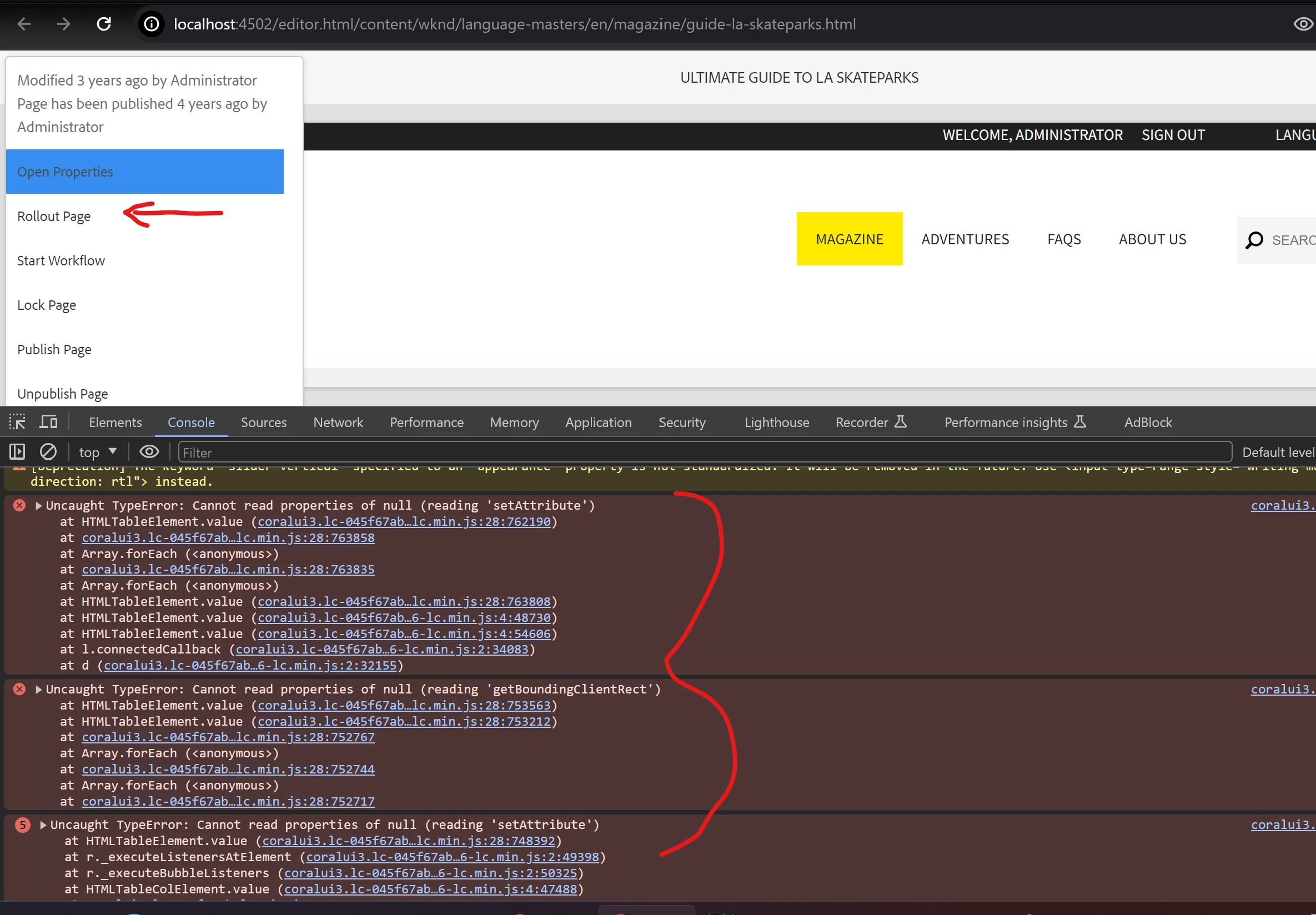 Page RolloutError on New SDK version(aem-sdk-2024.4.15977.20240418T174835Z-240300_