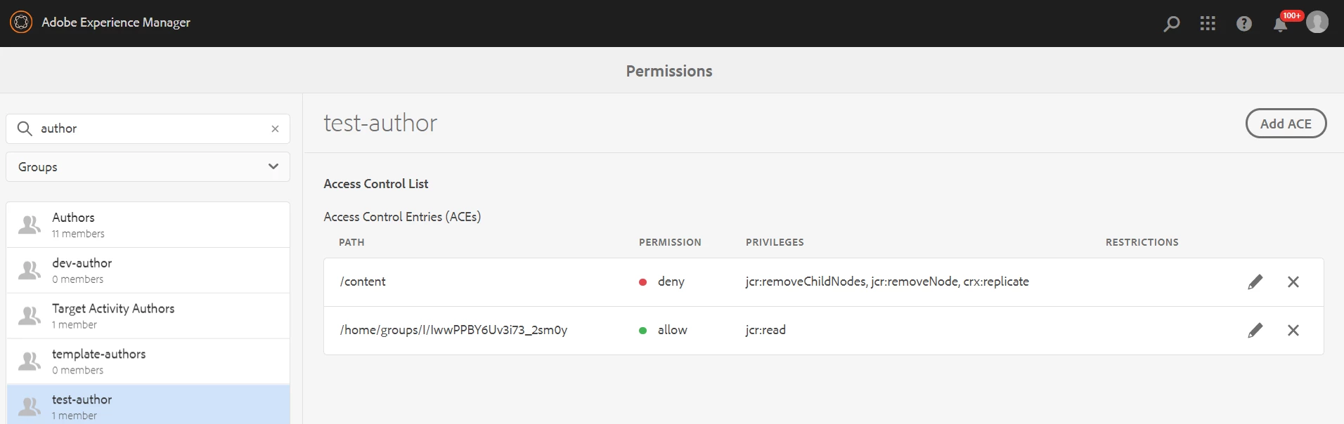 consider the case, that my new group needs to inherit permissions from content-author and then add some extra permission and remover some existing permission (which is coming from content-author). But i am not able to see all the paths in touch ui, so does it mean to add/remove i have to manually choose the paths from ADD ACE button (there are several such paths that needs to be added/removed).