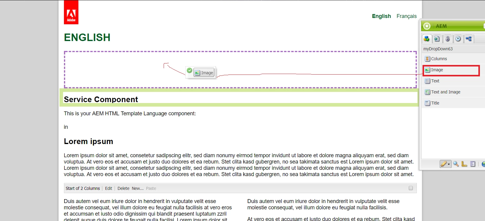 I have requirement wherein, I should be able to place components above the existing components in AEM Classic UI Mode. The layout of the dialog is editbar. I tried dragging new component over the existing component but I am unable to place above it. Please let me know any possible solution for the same