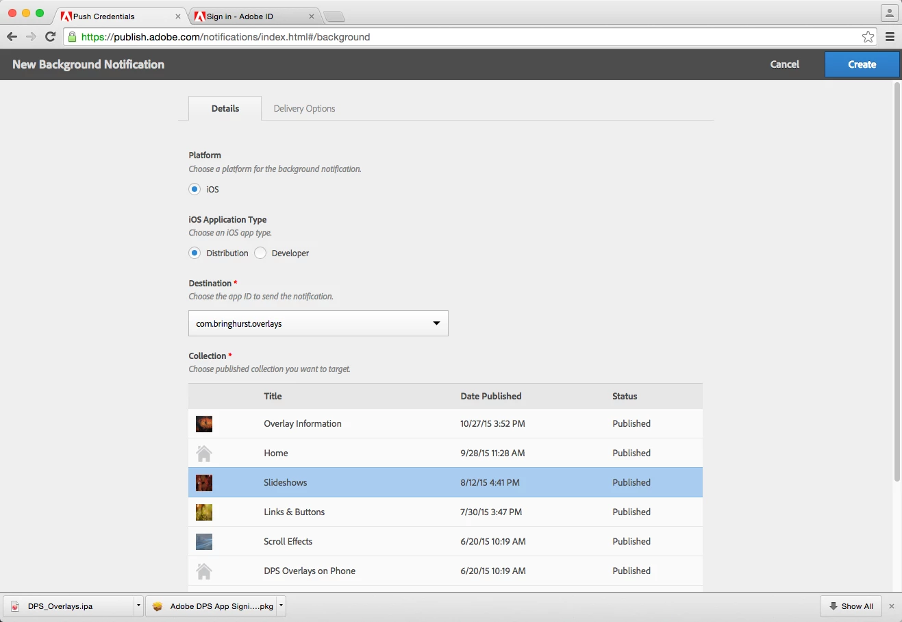 Digital Publishing Solution Help | Send push notifications