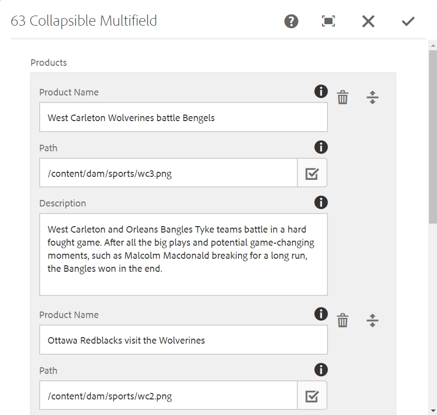 I am using the sling:resourceType :granite/ui/components/coral/foundation/form/multifield