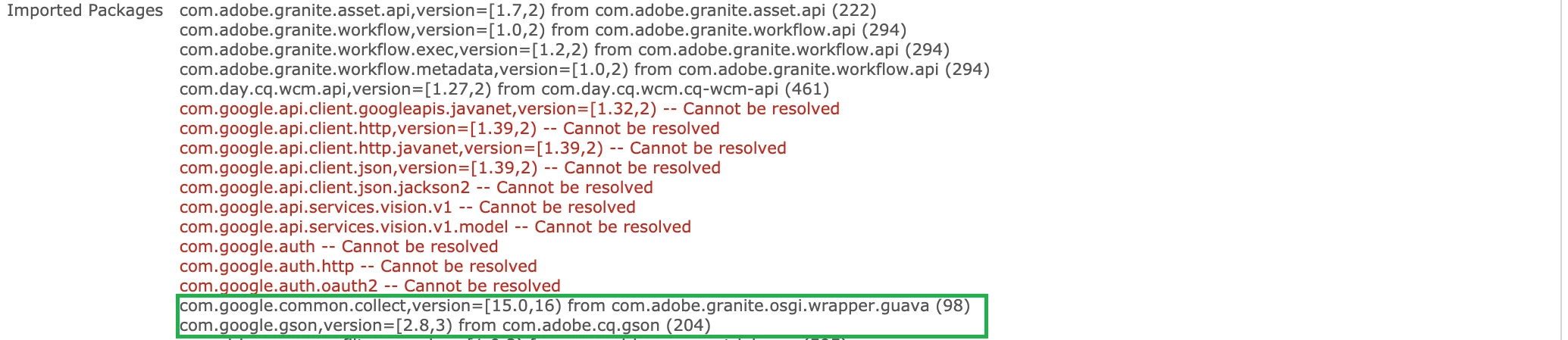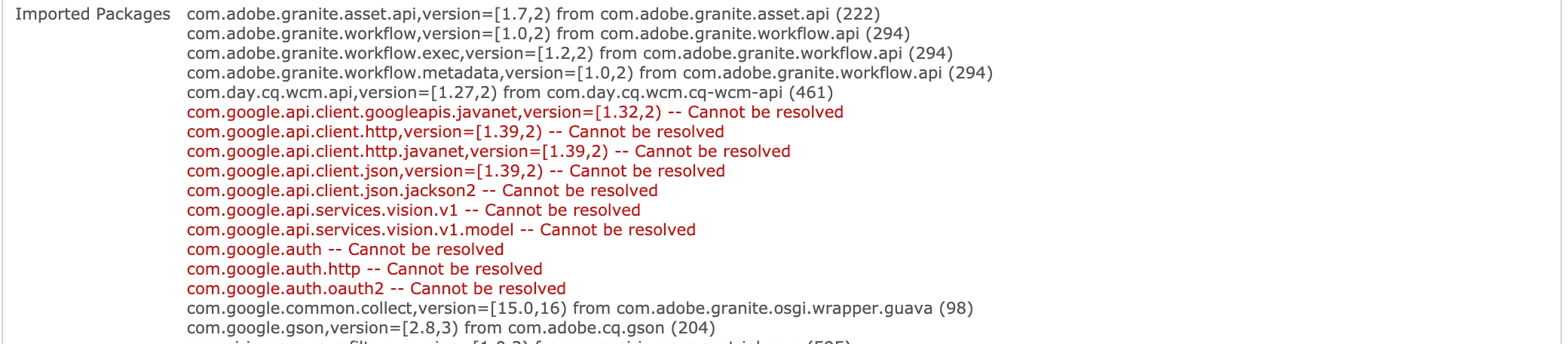 I am trying to use GCP Computer Vision with AEM and I've added the following dependencies in the Maven pom.xml: