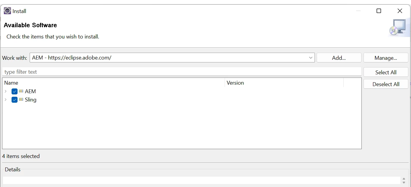 Problem while installing AEM Developer Tools for Eclipse