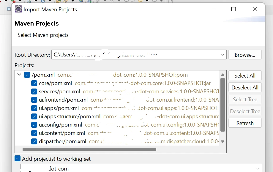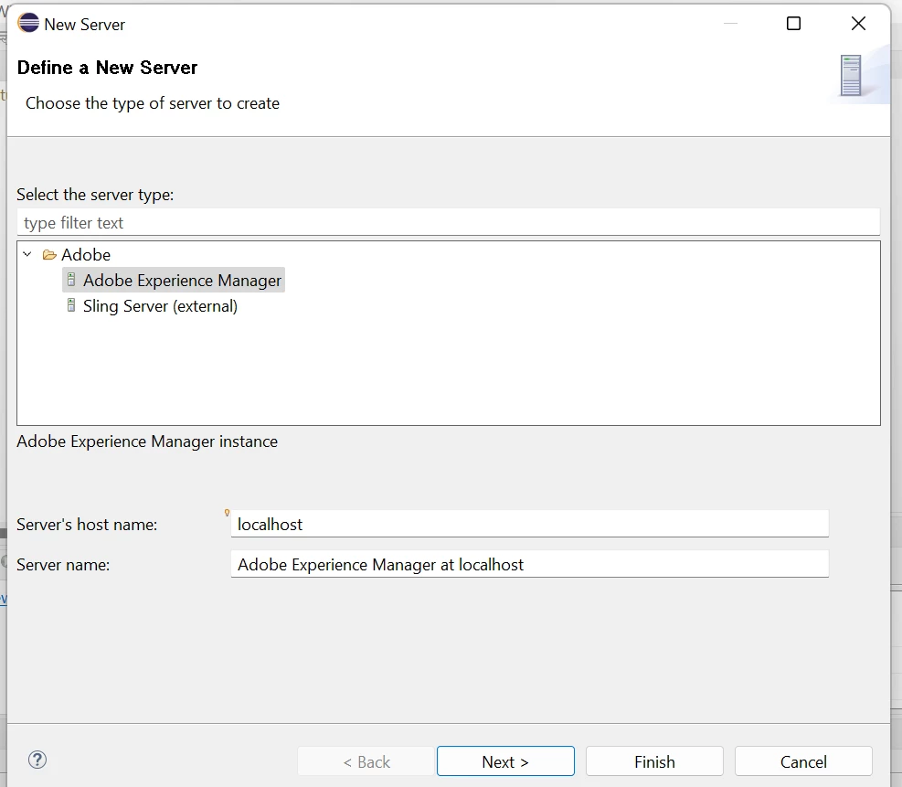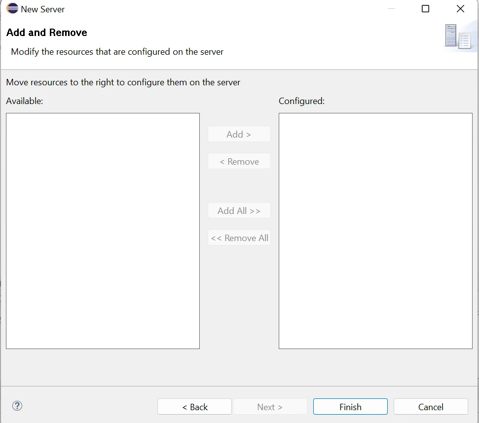 I have imported my maven project into eclipse and using "install new software" option(comes under Help) I have added AEM Server(Name - AEM & Location - https://eclipse.adobe.com/). After that when I opened AEM as Perspective, I could see this option - No Servers are available. Click this link to create new server to create new server. There I have selected Adobe Experience Manager from Adobe and gave Server host name and server name. But in the next page instead of showing the resources from my imported project, it is empty and showing - There are No resources that can be added or removed from the server.