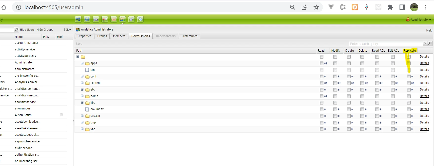 He has read rights for all the nodes.