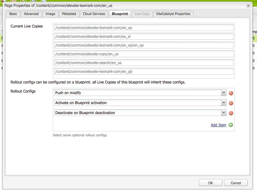 The same on the Activate and deactivate Roll out configs. We are on AEM 6.1 with SP1.