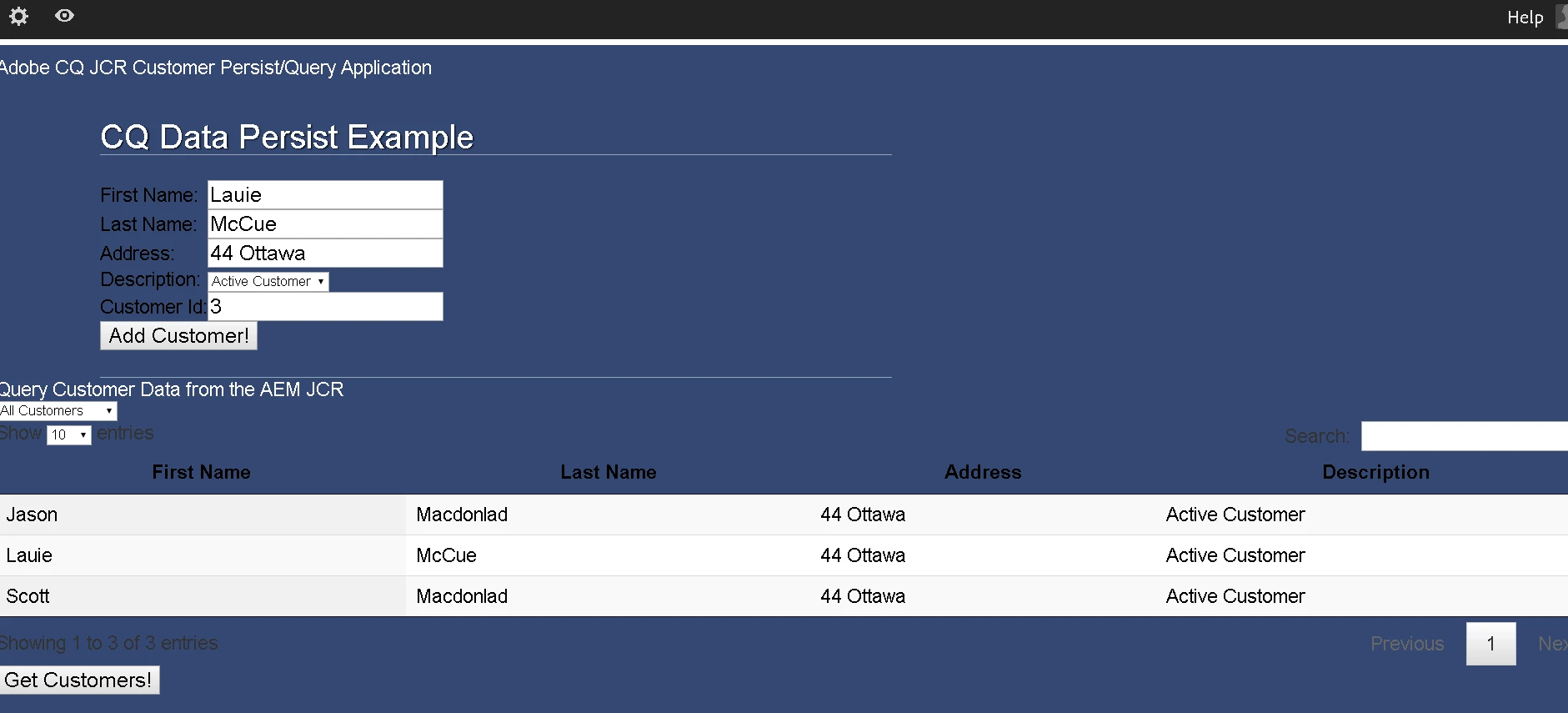I am working on the sample provided in the url populating the data in the data grid pulled from the JCR. I am facing the problem as the examples is not using the archetype10 to run the java code which was trained during the adobe training can someone help me on this.