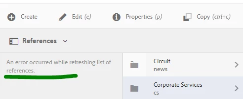 When a user access a particular content in sites.html, the references tab is showing below error.
