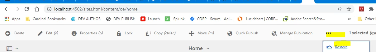Restore Option is not enabled in Touch UI - 6.5.11