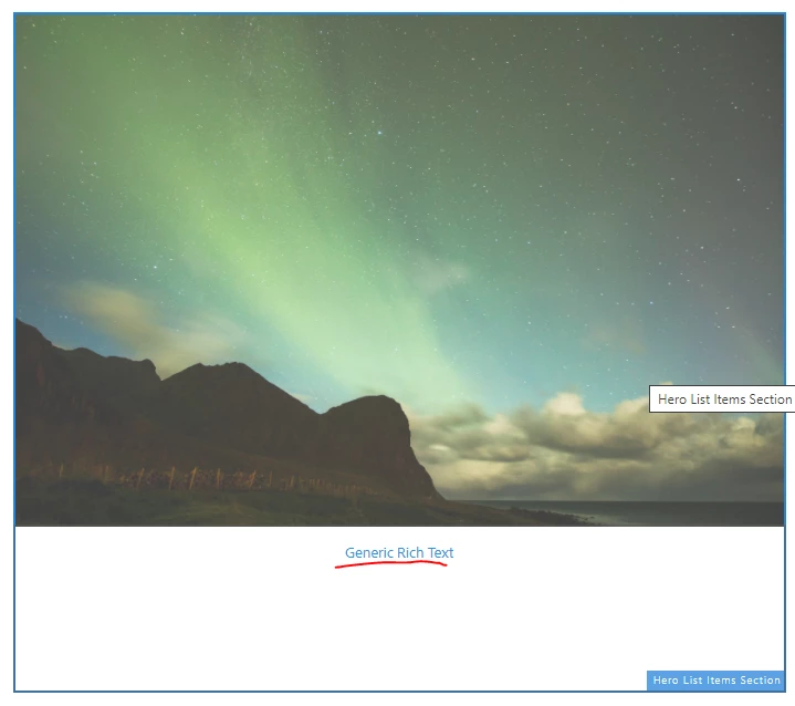 The code for adding RTE in the component looks like this: <div data-category="${properties.tiletype}" data-sly-test="${properties.includedes}" data-sly-resource="${'something' @ resourceType='/apps/foldername/components/content/genericrichtext'}"></div>
