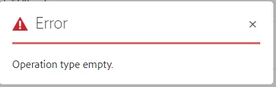 Error occurs and user is unable to go back to previous window. Text on the error is "Operation type empty".