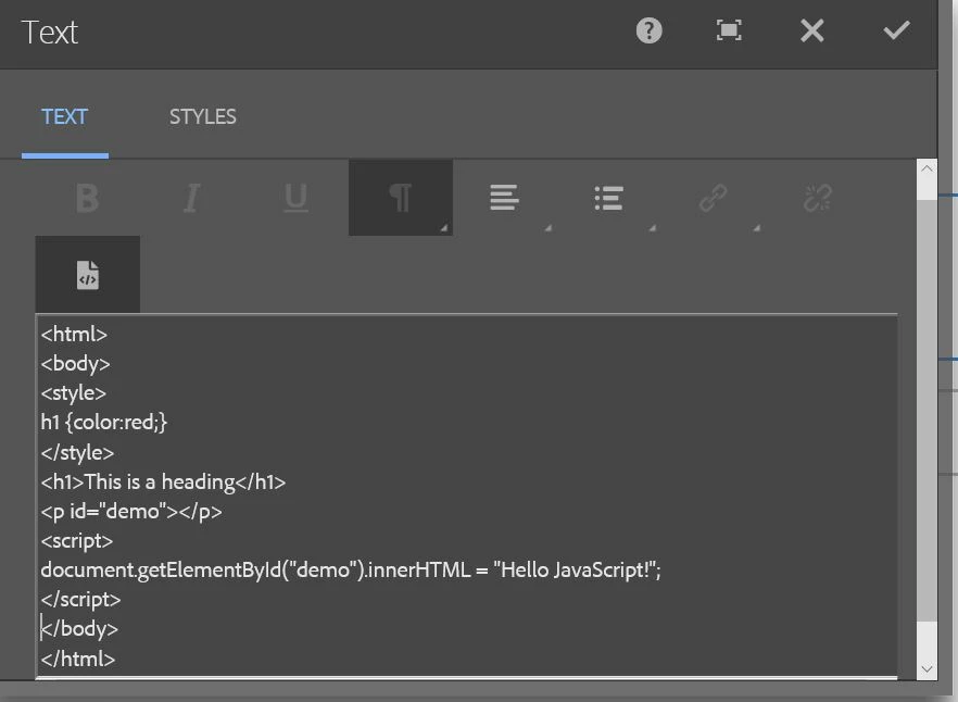I am trying to create a Editor component that will take inline javascript. I understand that I can use clientlibs folder for loading JS, but as per my requirement they want to use embed tags with JavaScript in the editor, and I think some of that is also used for rapid development. Currently with the state of RTE, I cannot put a script <script/> tag even after extending it, as it strips it out and only takes the html tags. Same in the case of CSS <style/> tags.