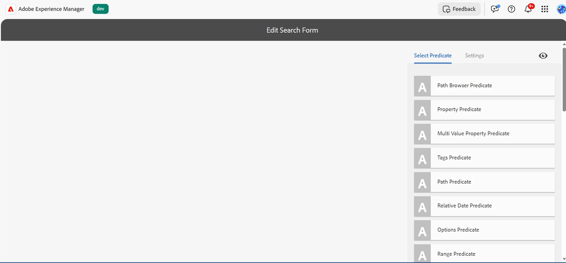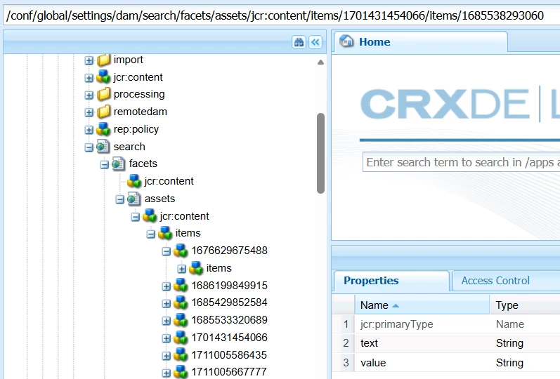 Search Facets editor is appearing empty , No properties are visible to edit.