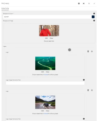 I need to create two image uploads in my hero image component. Both need to be drag and drop images.