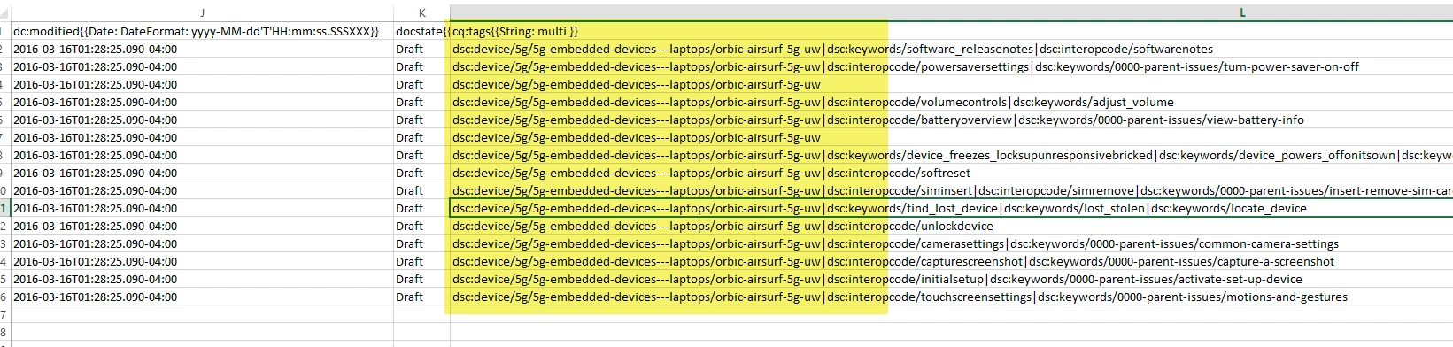 Separate Columns for CQ Tags in Export Metadata Reports