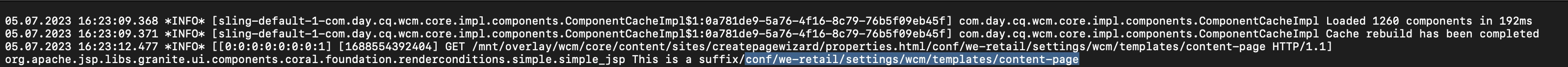 Log logger = LogFactory.getLog( this.getClass( ) ); String suffix = slingRequest.getParameter("item"); logger.info( "This is a suffix" + suffix);
