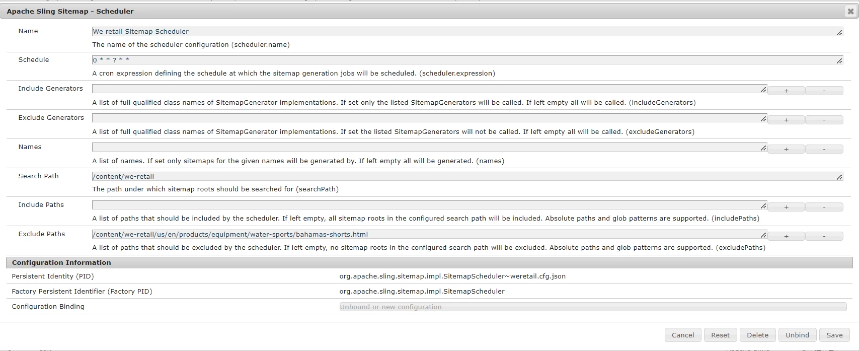 Site Map is generating but it is not excluding the path which i am providing through sitemapscheduler config.