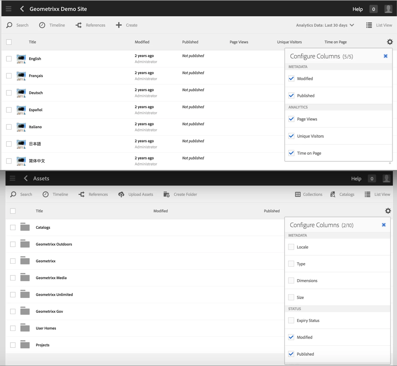 Sites view columns and Assets view columns issue in TouchUI