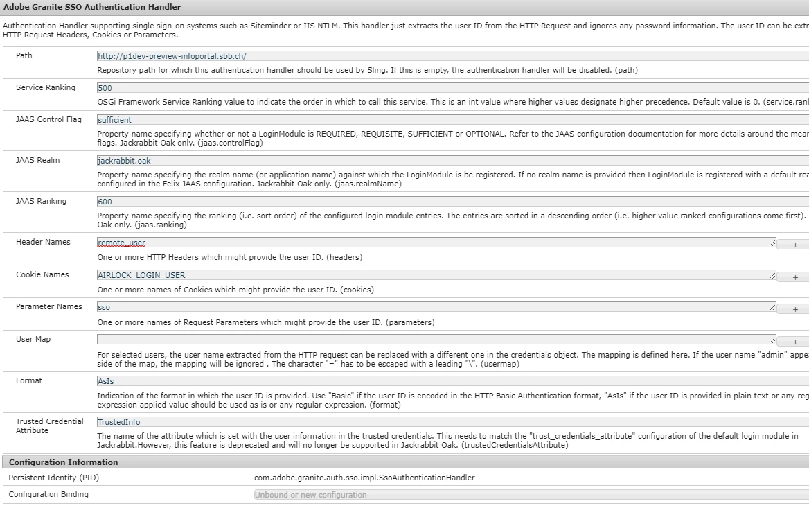We have configure SsoAuthenticationHandler in OSGI Config for Testing.