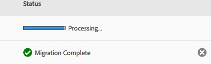 Processing is stalled at 96% for the last hour—Clearing cache, or quitting browser doesn't work. Same experience in all browsers. While it's possible to clear delete a successful migration, there is no option to cancel a migration.