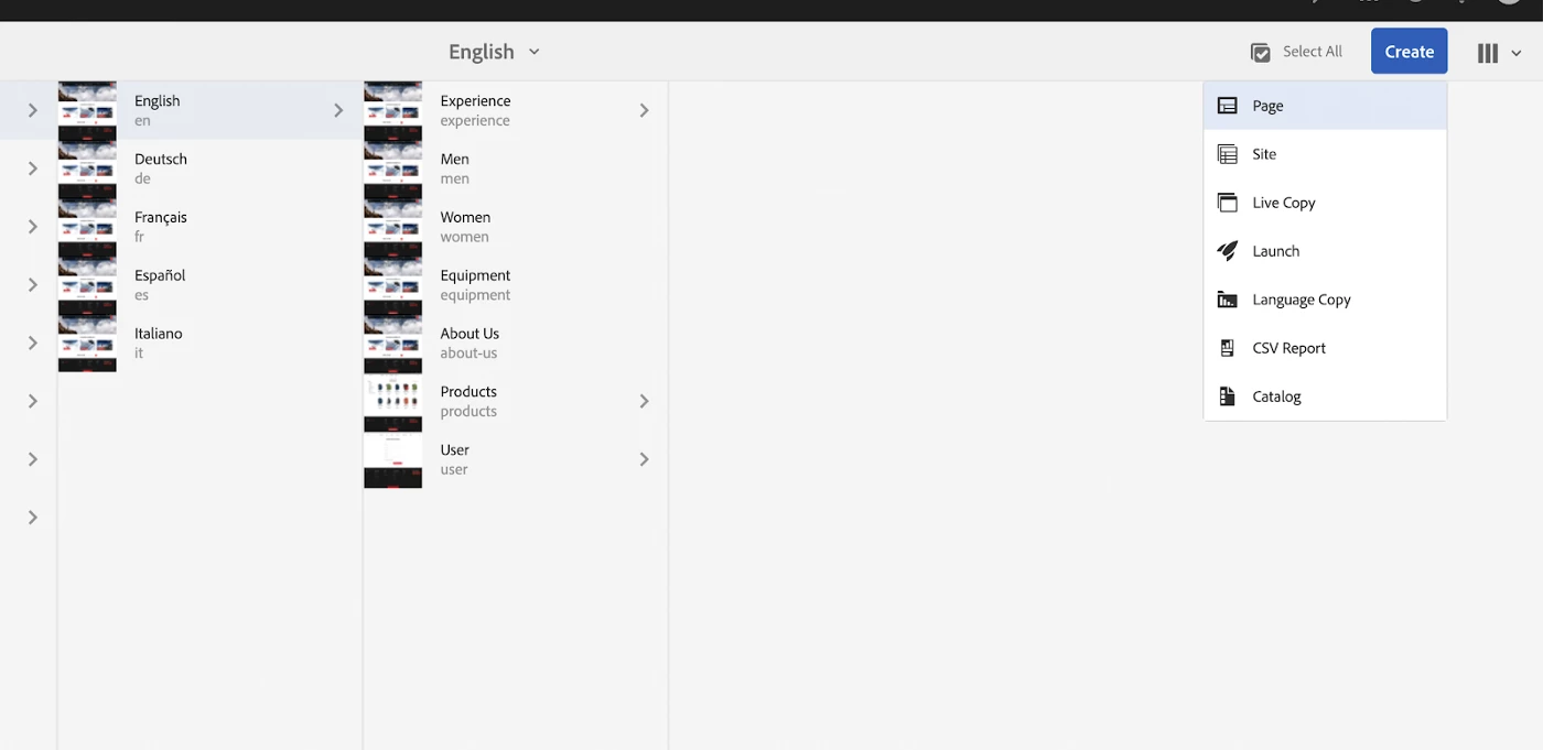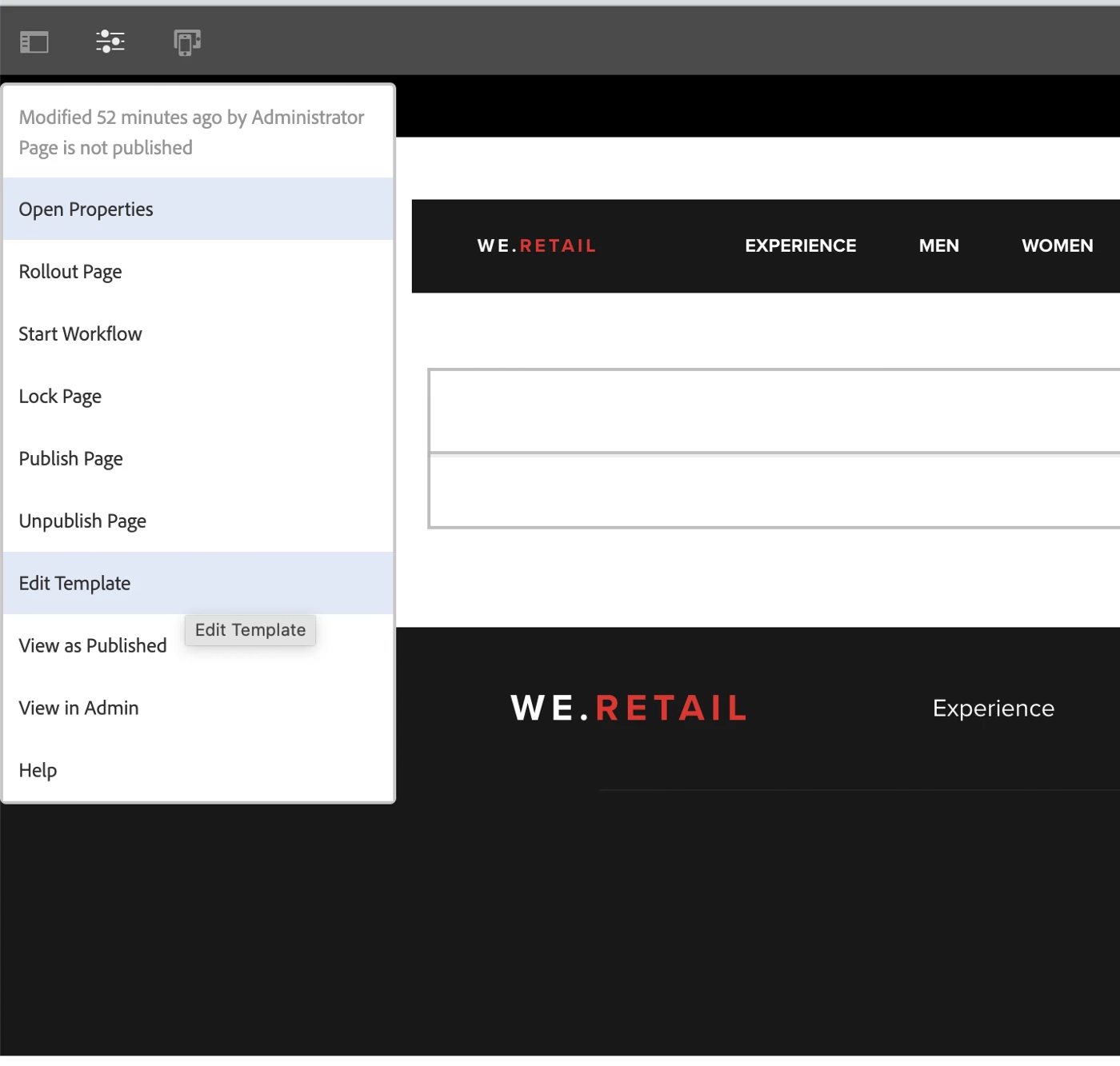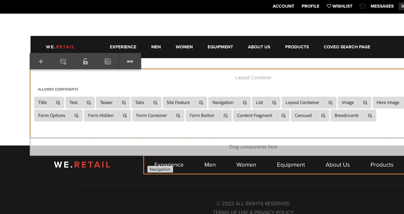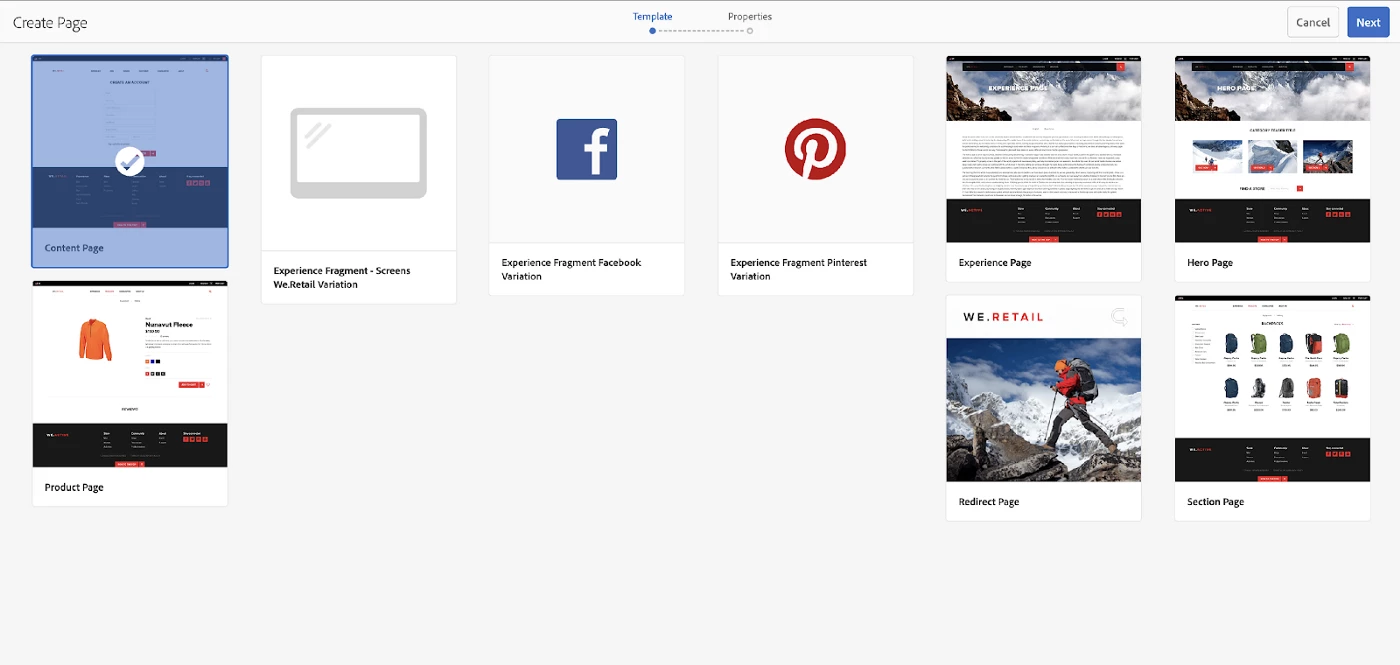 Step 4 — Go to your site (I am using we-retail site just for demo purposes). Then Create one page to which we are going to add our Coveo component.