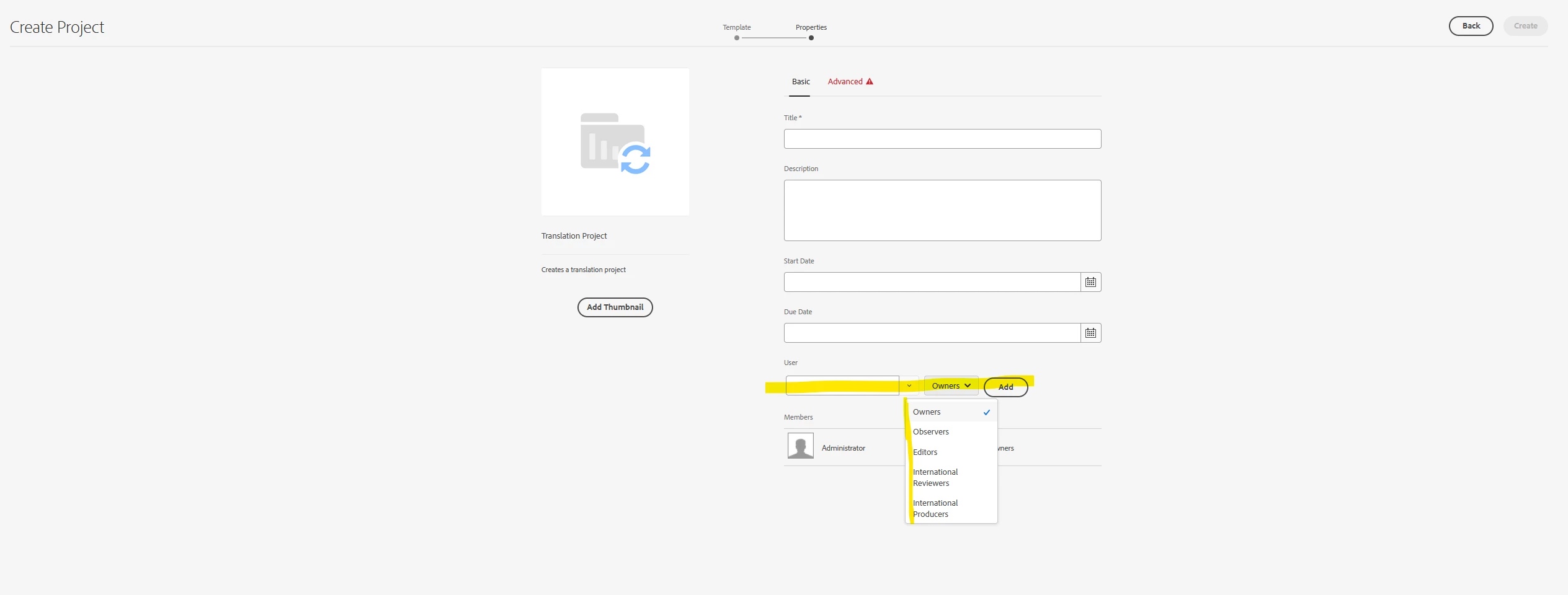 | Use-case: | As an editor which has the task to create translation projects, I need to be able to add other users to the translation project so that they can see and maintain it WITHOUT the help of an administrator. |