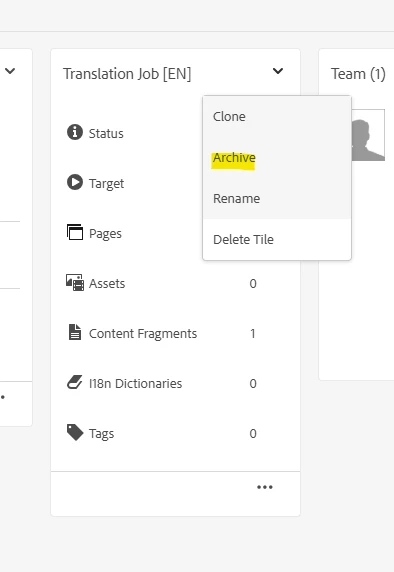If you have a completed translation job, you can click on “Archive”. With that, the job is not displayed anymore in the UI. BUT there is also no chance to restore it - the word “Archive” indicates something completely different for the editor and this is, that he can restore it. So, currently it is same like “Delete Tile”. So, totally missleading options here.
