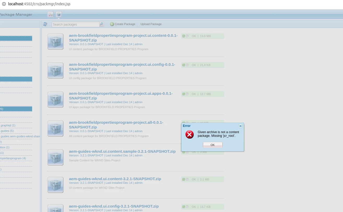 1) It asked to download the latest jar and as I tried to install it as a package using the package manager or through etc/asc-tools whose link is given in the documentation, I am getting errors. Please refer to the attached screenshots of the error.