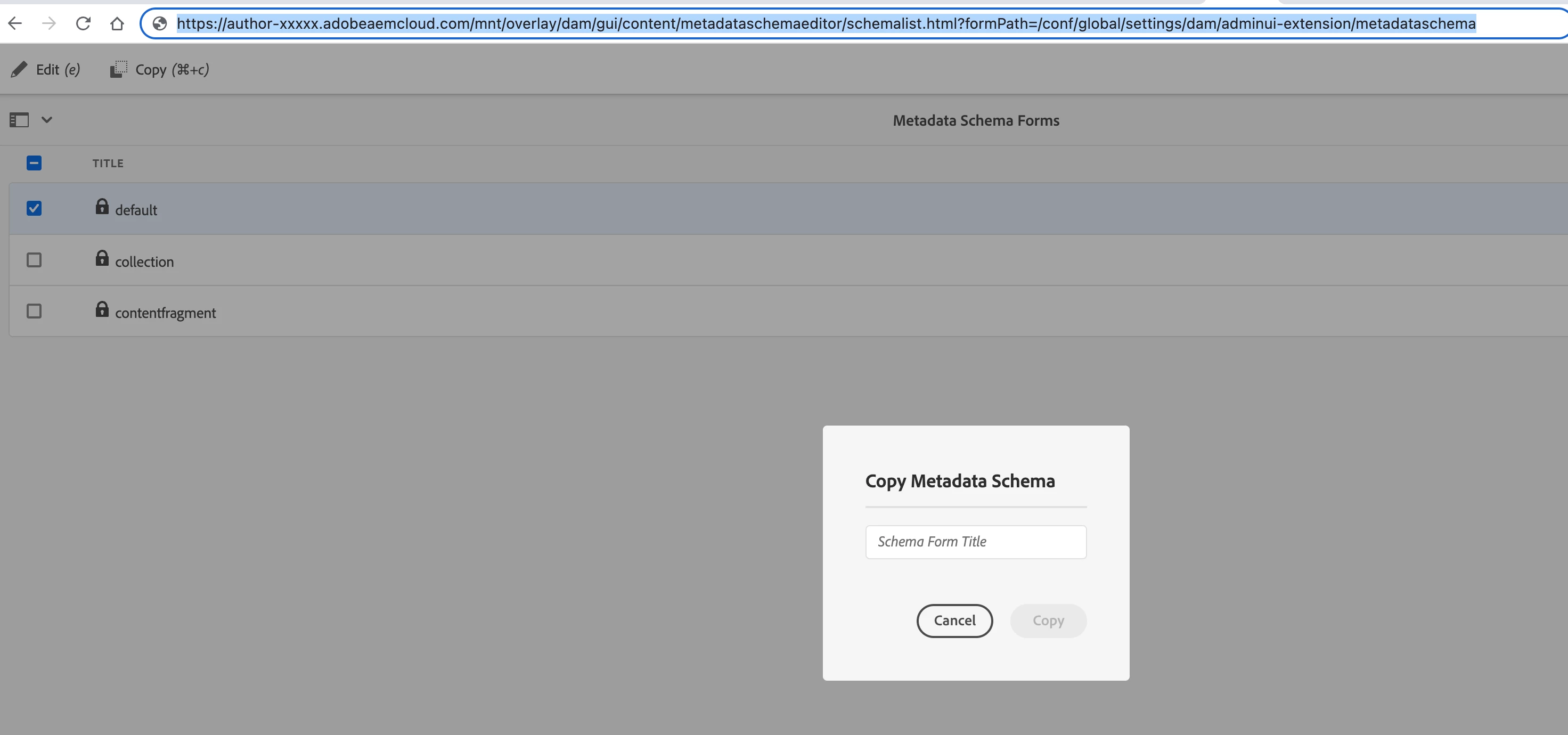 When I try to create my own metadata schema from the default metadata schema form, I get the following error message