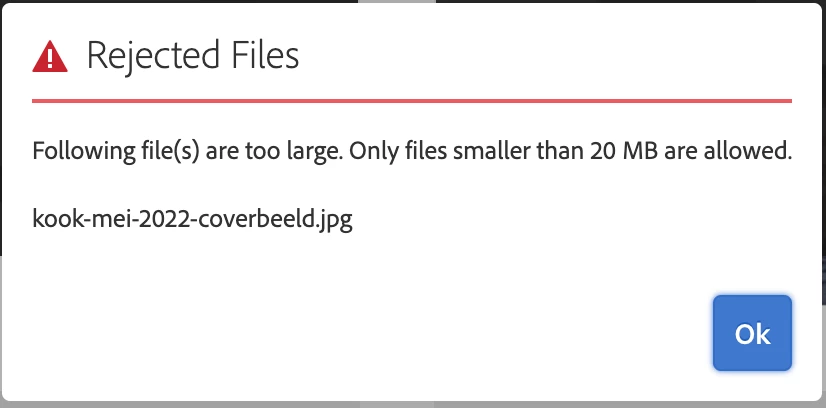 Unable to show Asset size restriction popup only for Images in AEM 6.5