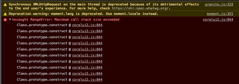 Uncaught RangeError: Maximum call stack size exceeded