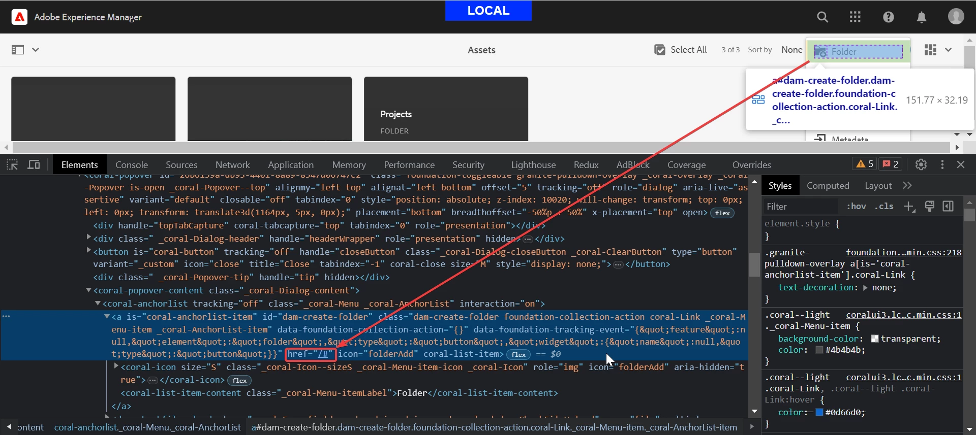 Unexpected redirection when creating a folder within assets.