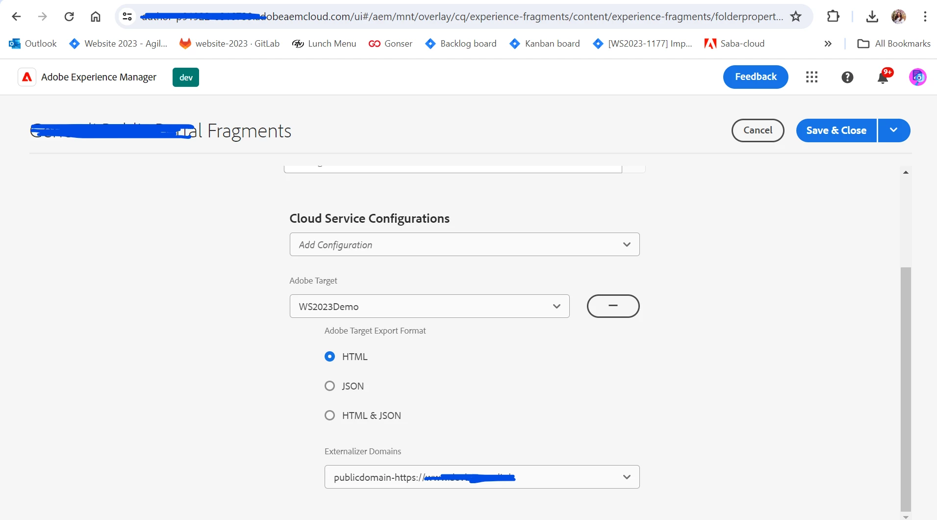 Updating XF root folder with cloud configuration removes all Experience Fragments
