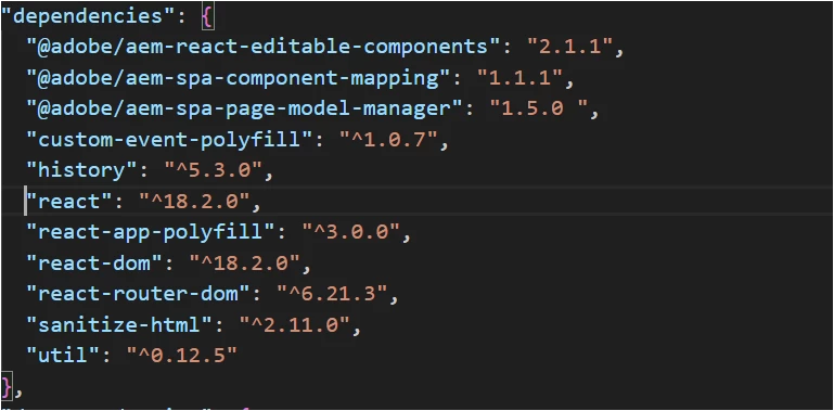 And also in the package.json the editable components and other dependencies version also got upgraded to latest versions available as mentioned below.