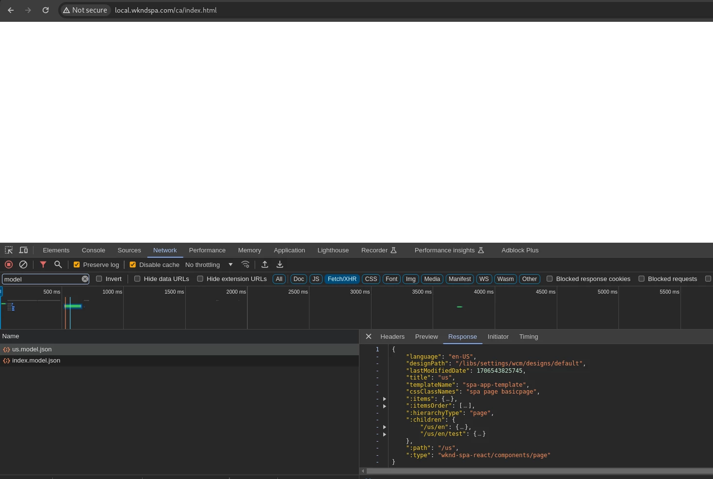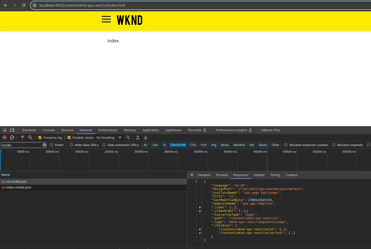 From author, If I land on test page then go to the index page the following model gets loaded and both pages render properly