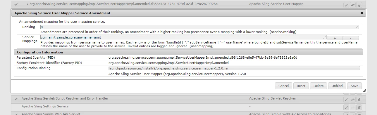 apache sling service user mapper service amendment ---> I have provided the details in service mapping ....and saved it.. where we can see our newly created or added configuration ?